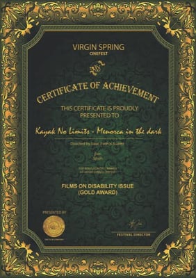 Us anunciem gratament que el documental Kayak No Límits - Menorca a Cegues ha rebut el premi internacional al Virgin Spring Cinefest, atorgant el primer premi dins la categoria "Disability Issue".